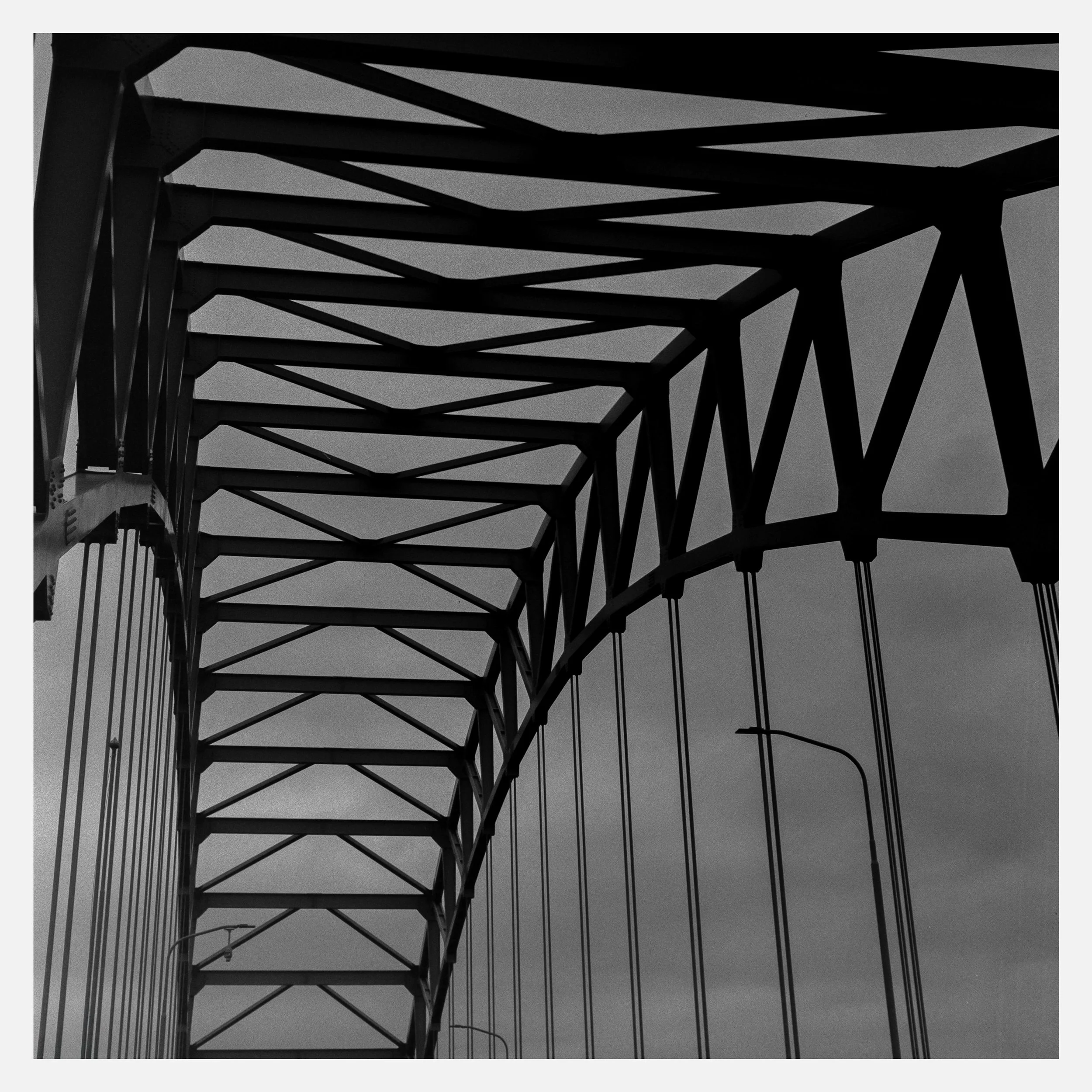 The bridge itself is massive and structural. I leaned into that, isolating details and carving compositions from repeating lines and hard geometry. The light poles became interruptions, breaking the rhythm, adding tension. As a series, I’m genuinely happy with how these frames came together.